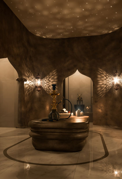 Súkromný wellness v štýle hammam ako vystrihnutý z rozprávky Tisíc a jedna noc. Nachádza sa v ňom fínska a parná sauna, kneippový kúpeľ, sprcha, oddychové miestnosti a vodný prvok. Ladené v zemitých tónoch doplnené zlatou mozaikou a hviezdnym nebom na strope.